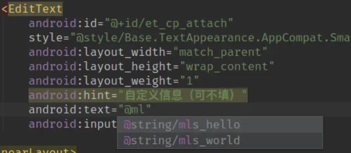 相信大家应该已经发现了,每一个资源都会以 mls 开头,这样有个好处,就是别人在引用了你的库之后,用代码提示的时候,只要看到 mls 开头的资源,就知道是你库里面的,不要用。但是这还不够,因为 Android Studio 还是会在人家写代码的时候把你的资源提示出来: