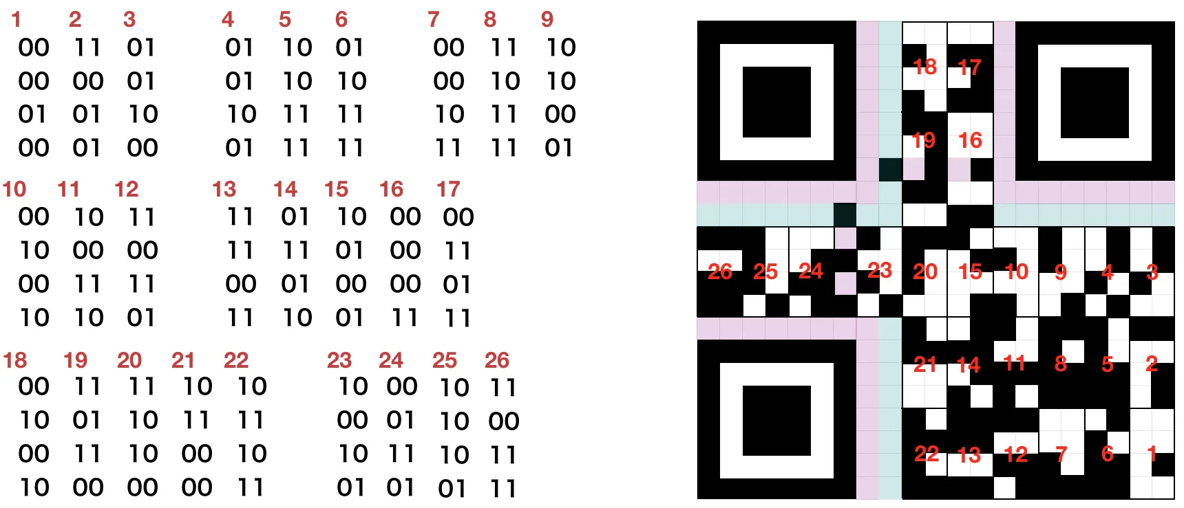 二维码包含的二进制串具体是由以下几个部分组成的: