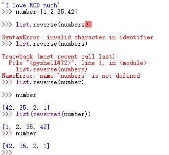 list.reverse(numbers)跟list(reversed(numbers))不相同 改变了numbers的值 没改变numbers的值