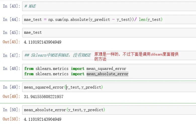 RMSE和MAE的量纲是一样的,都是数据中y对应的量纲。他们的区别如下: