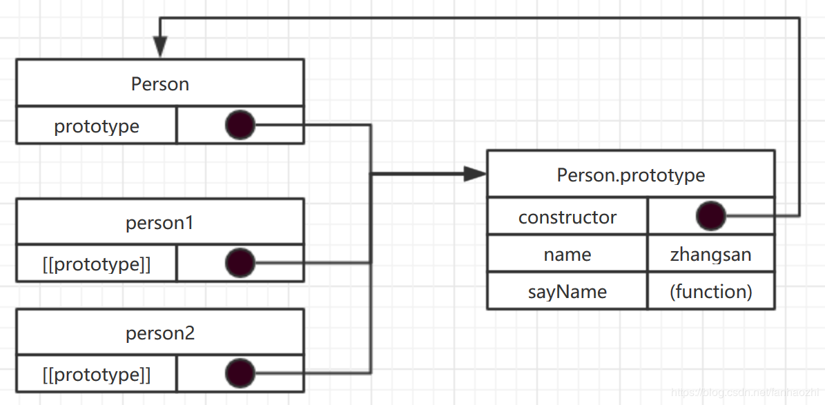 - 实例对象的"[[prototype]]"属性(即__proto__)指向"Person.prototype"。用一个图表示: