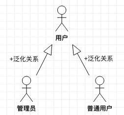 在上面的图中,我们可以发现,管理员和普通用户都是用户的特殊化,所以可以抽象出一个父参与者来,管理员和普通用户都拥有用户的全部特性,同时还具有自己特殊的特性。