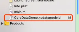 然后在文件目录中自动生成一个后缀为.xcdatamodeld的文件