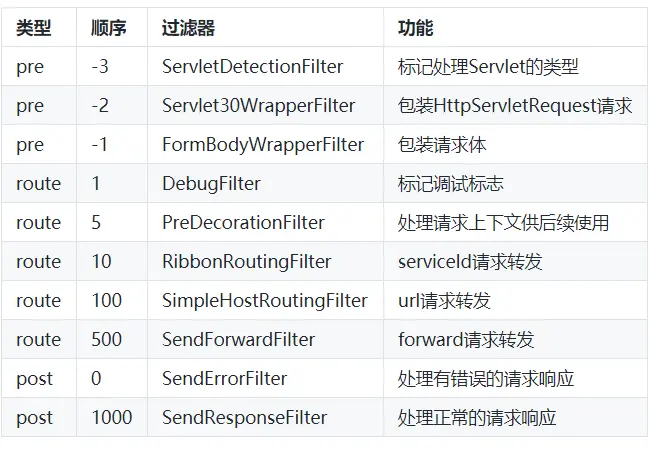 Zuul中默认实现的Filter: