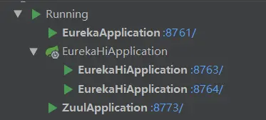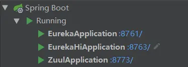 运行eureka注册中心,eureka-hi服务提供者,zuul网关三个子模块。