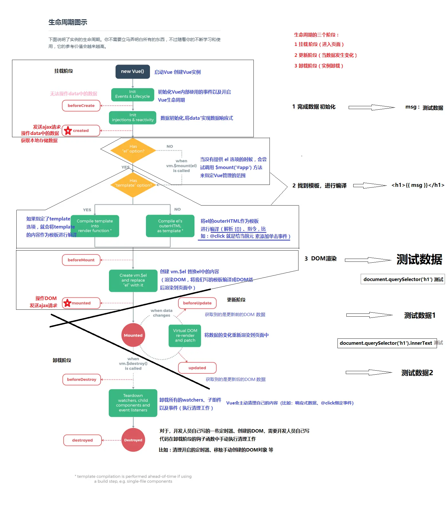 - 生命周期函数的命名都是vue规定好的,不要直接随便改