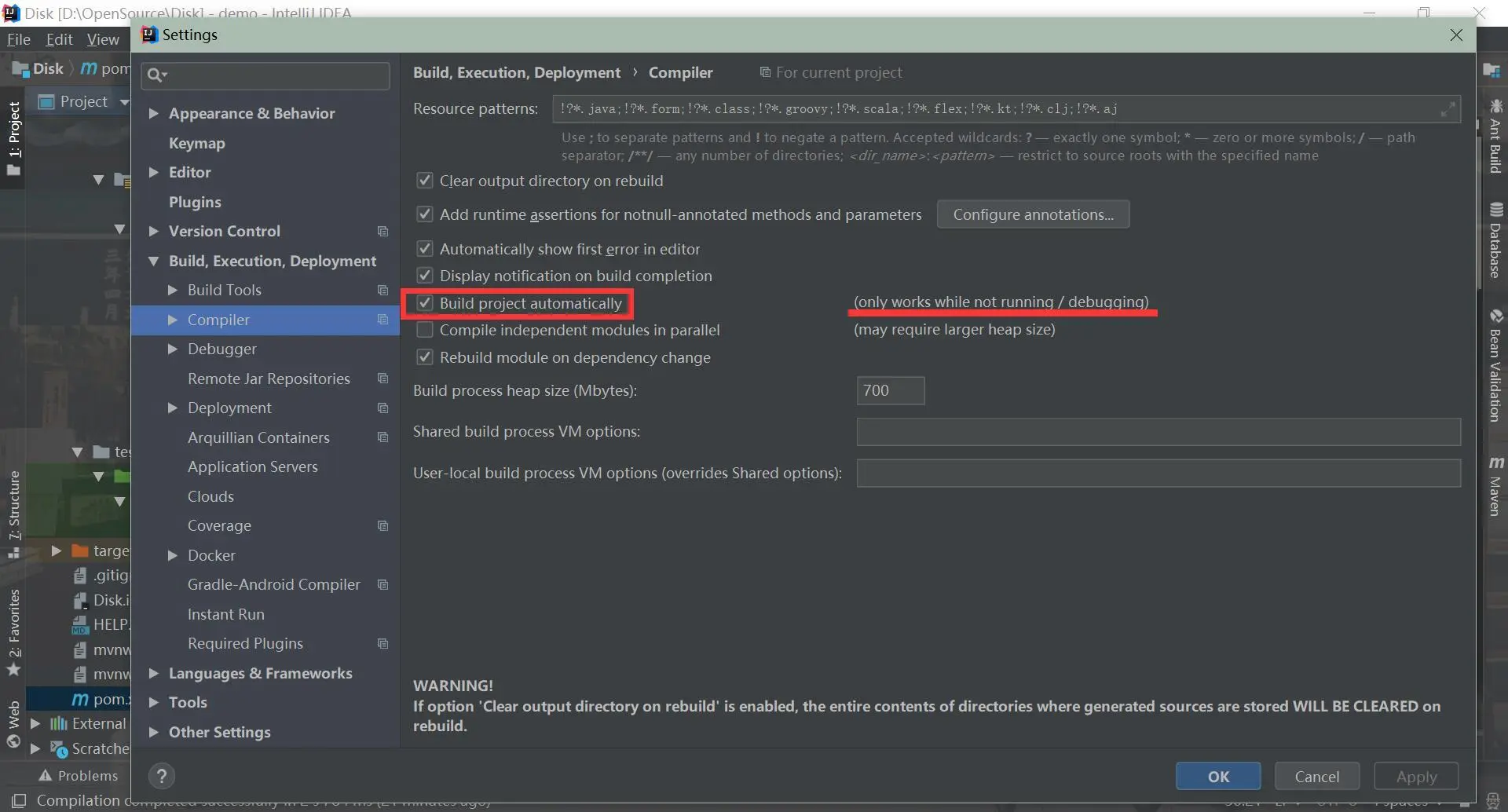 - (1)File-Settings-Compiler-Build Project automatically