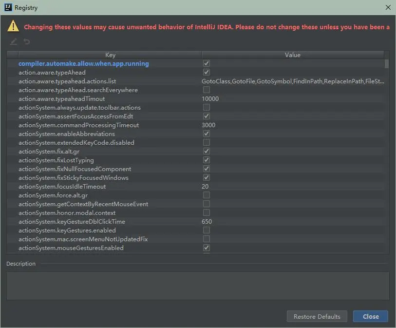 - (2)ctrl + shift + alt + / ,选择Registry,勾上 Compiler autoMake allow when app running