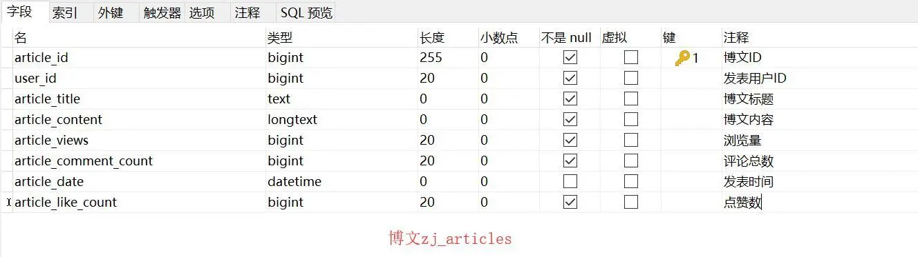 `article_id` bigint(255) NOT NULL AUTO_INCREMENT COMMENT '博文ID',
