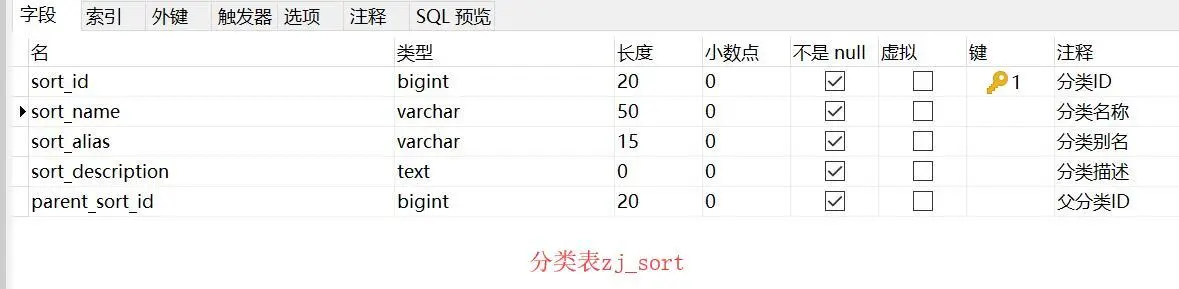 `sort_id` bigint(20) NOT NULL COMMENT '分类ID',