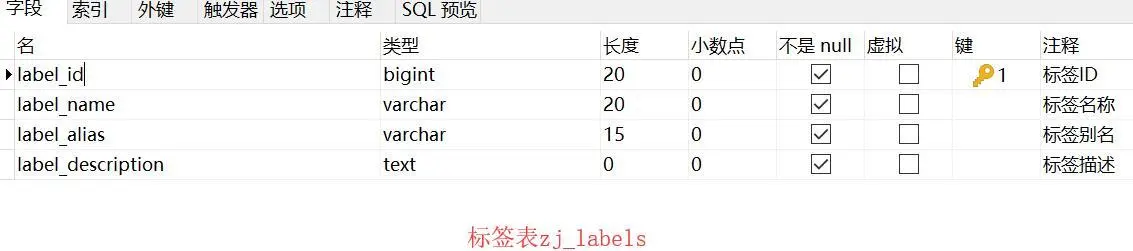 `label_name` varchar(20) NOT NULL COMMENT '标签名称',