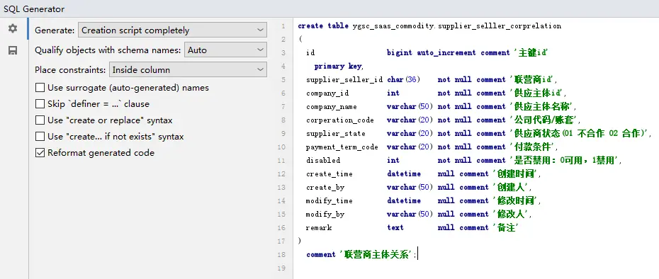 3.生成创建某张表的脚本