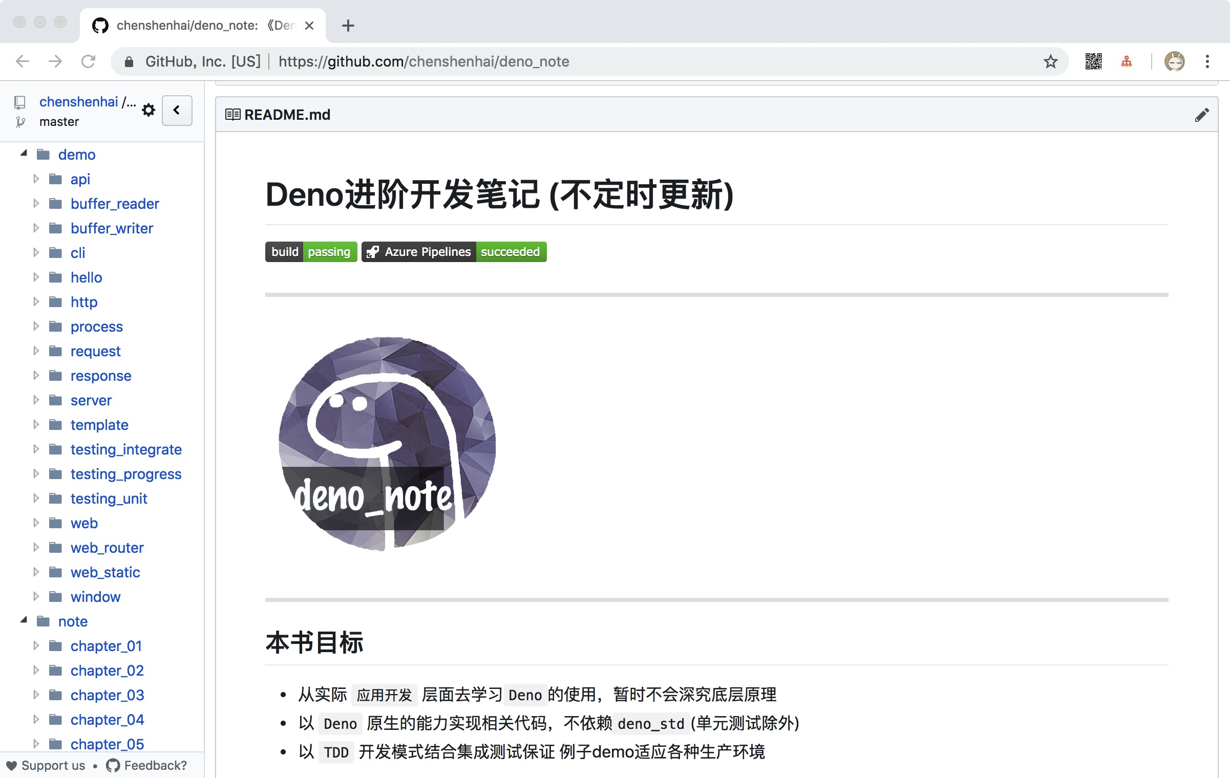 Deno基本模块和官方标准模块 处于开发中不稳定状态,存在一堆 // TODO 的代码。2019年春节假期中,在GitHub上硬生生啃了好几个 Deno 项目仓库,开始动笔写下这本《Deno进阶开发笔记》 。写这笔记的出发点很简单,一来是作为自己学习Deno的笔记记录,二来希望能给Deno开发社区添砖加瓦。