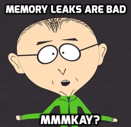 就像是内存一样,内存泄漏是应用中过去不再使用但是没有返回给操作系统或是给自由内存池的内存块。