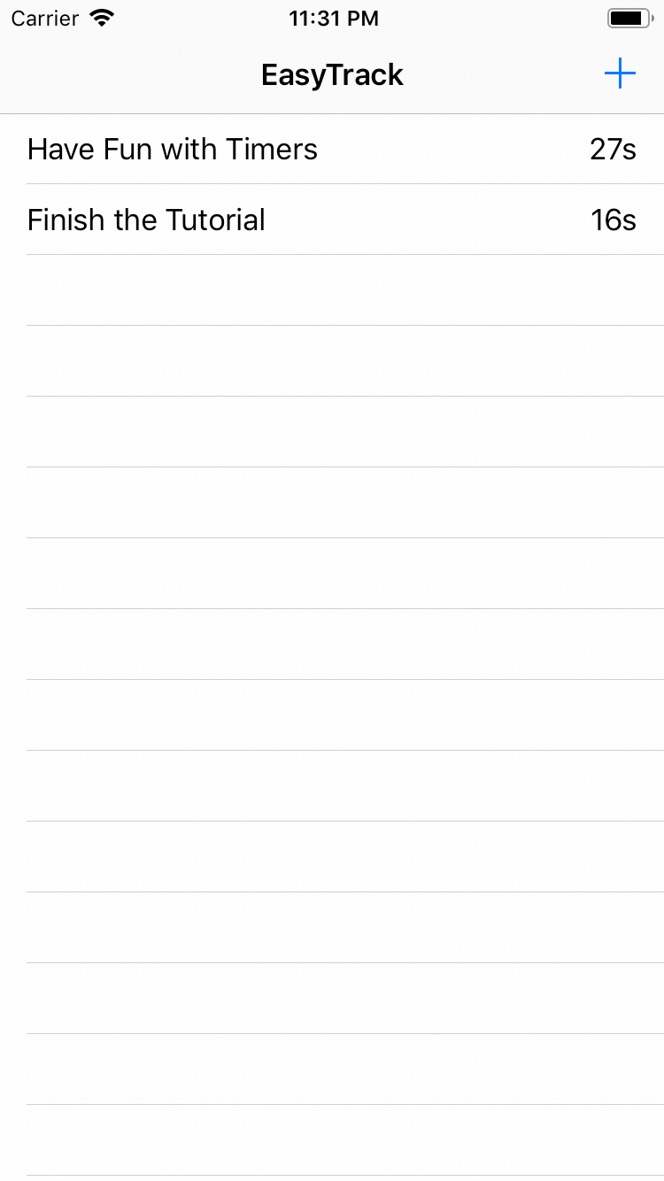 您会注意到,table view单元格的时间标签现在每秒更新经过的时间。