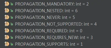 | PROPAGATION_SUPPORTS | 使用当前事务;如果当前没有事务,那么就以非事务的方式执行。 |