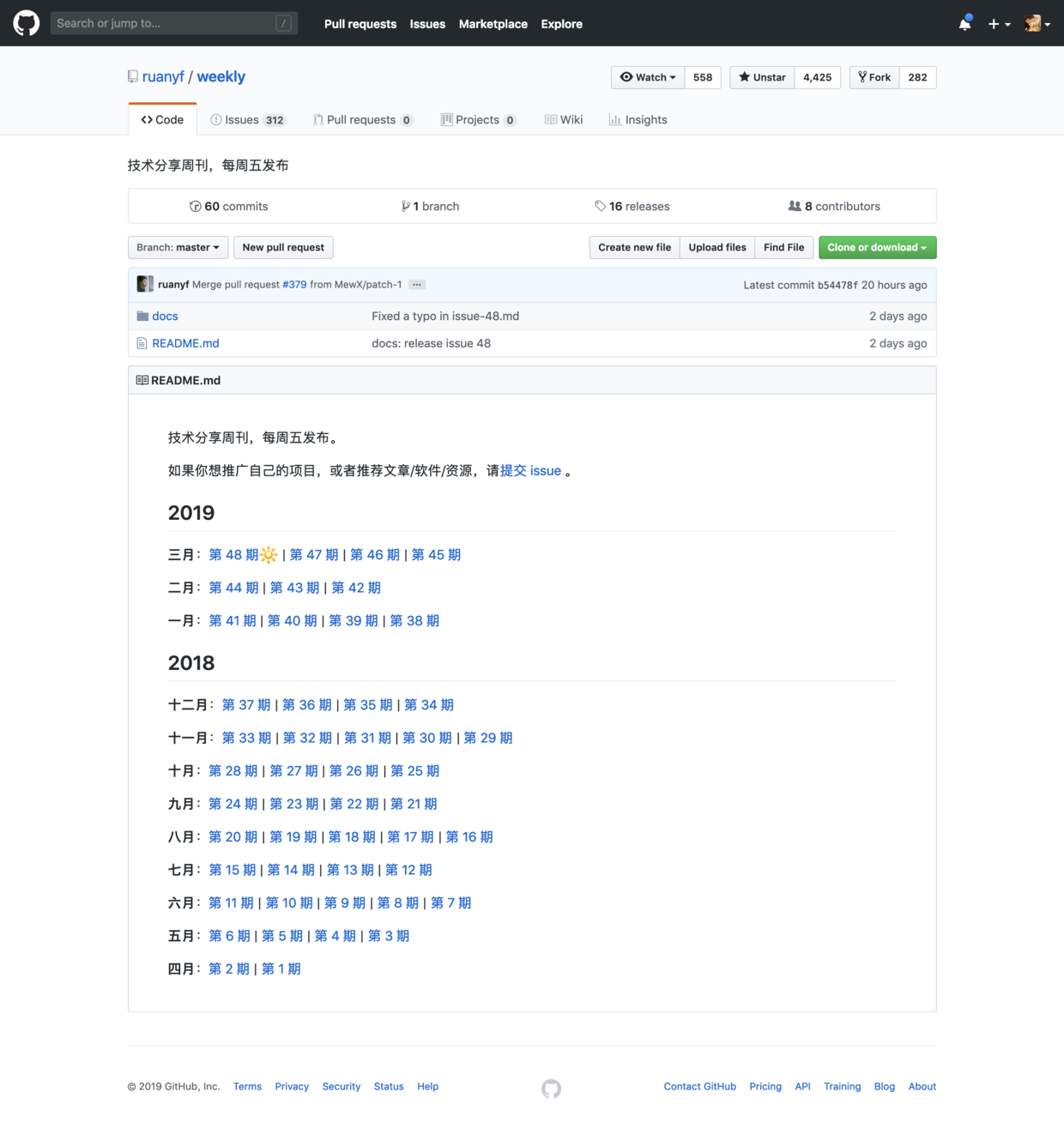 204 [开源阅读] 《阮一峰技术分享周刊,每周五发布》