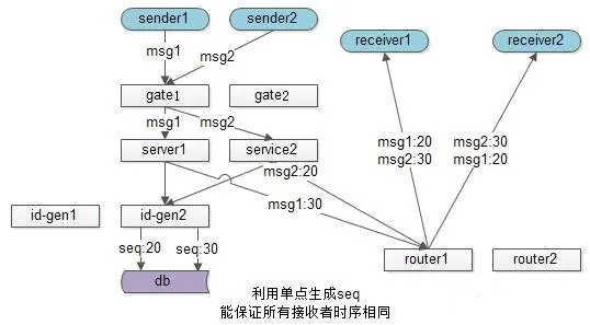 对于严格时序的业务场景,可以利用单点写db的seq/auto_inc_id生成单调递增的id,来保证顺序性。 画外音:这个生成id的单点容易成为瓶颈。