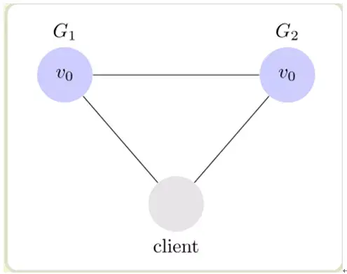 用户可以选择向 G1 或G2 发起读操作。不管是哪台服务器,只要收到请求,就必须告诉用户,到底是 v0 还是 v1,否则就不满足可用性。