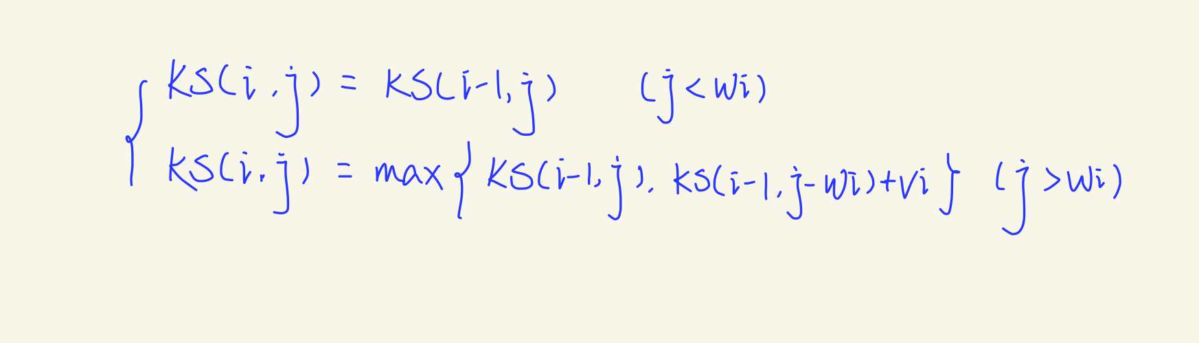 KS(j) = max{KS(j),KS(j - wi) + vi}
