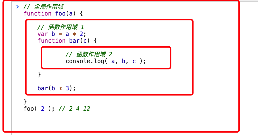 console.log( a ); // 词法作用域输出的是 2,动态作用域输出的是 3