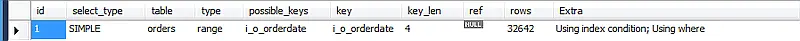 | range | i_o_orderdate | i_o_orderdate | 32642 | 0.281 | Using index condition; Using where | 18 |