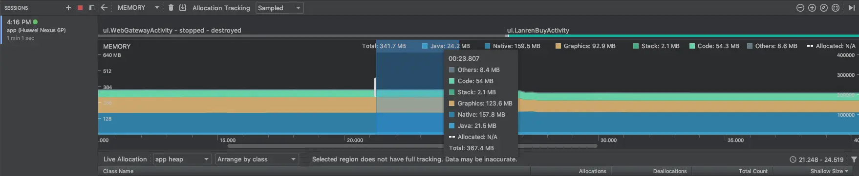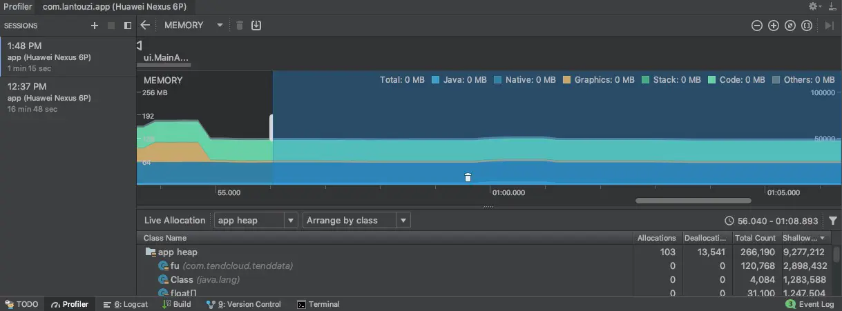 使用 Memory Profiler 查看 Java 堆和内存分配