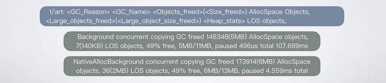 在AndroidStudio Logcat过滤GC,然后操作App一段时间后会出现上图的GC内容: