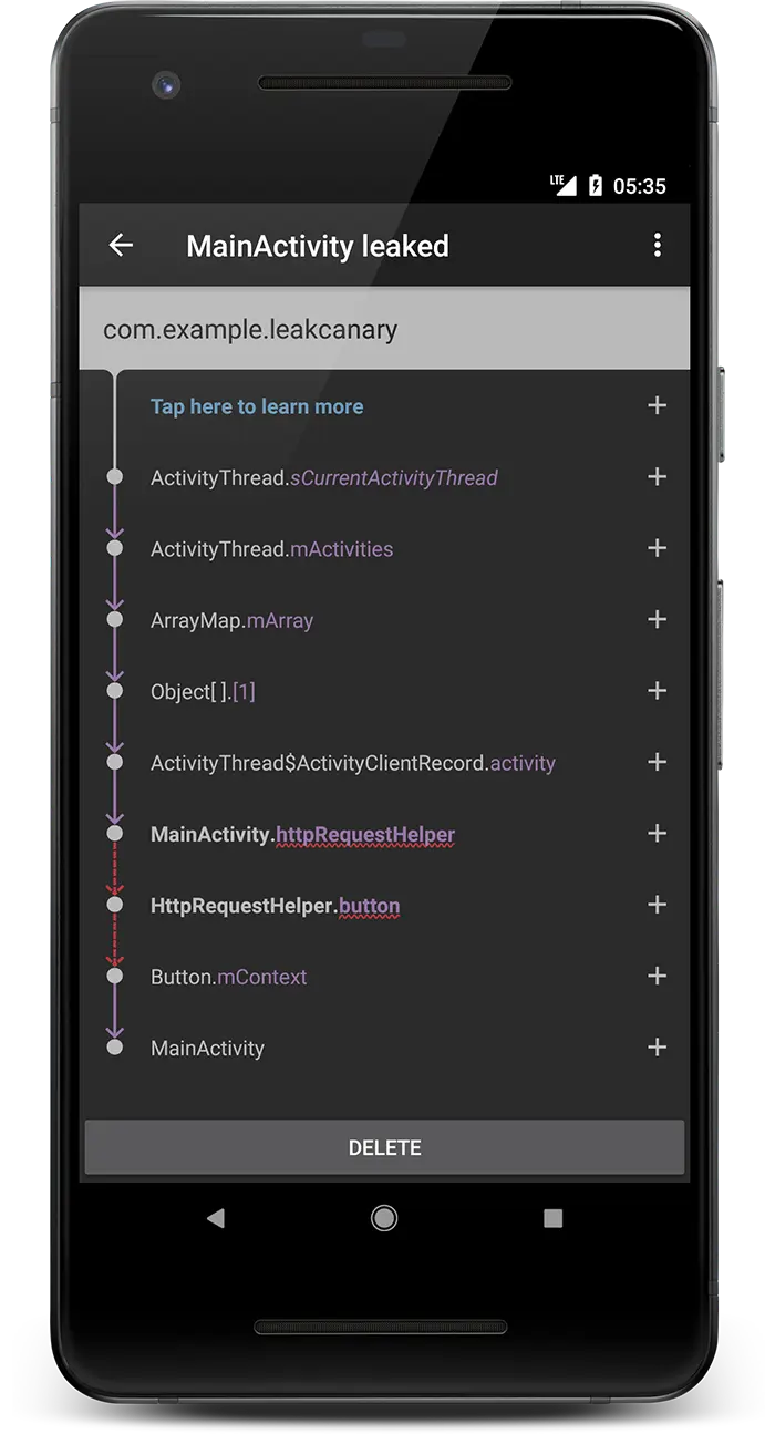 LeakCanary的问题:LeakCanary也有一定的不确定性,一般同一个地方反复泄漏5次,算是一个泄漏,同时不建议用在线上环境。