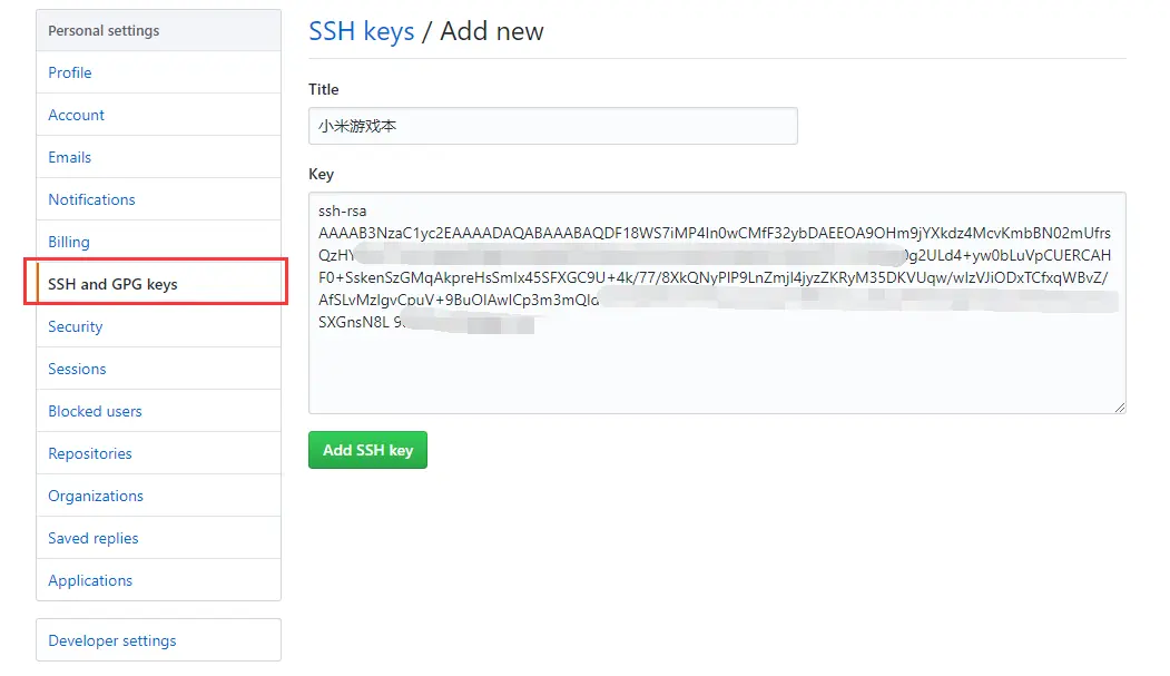 复制is_rsa.pub里面的秘钥到github下的ssh