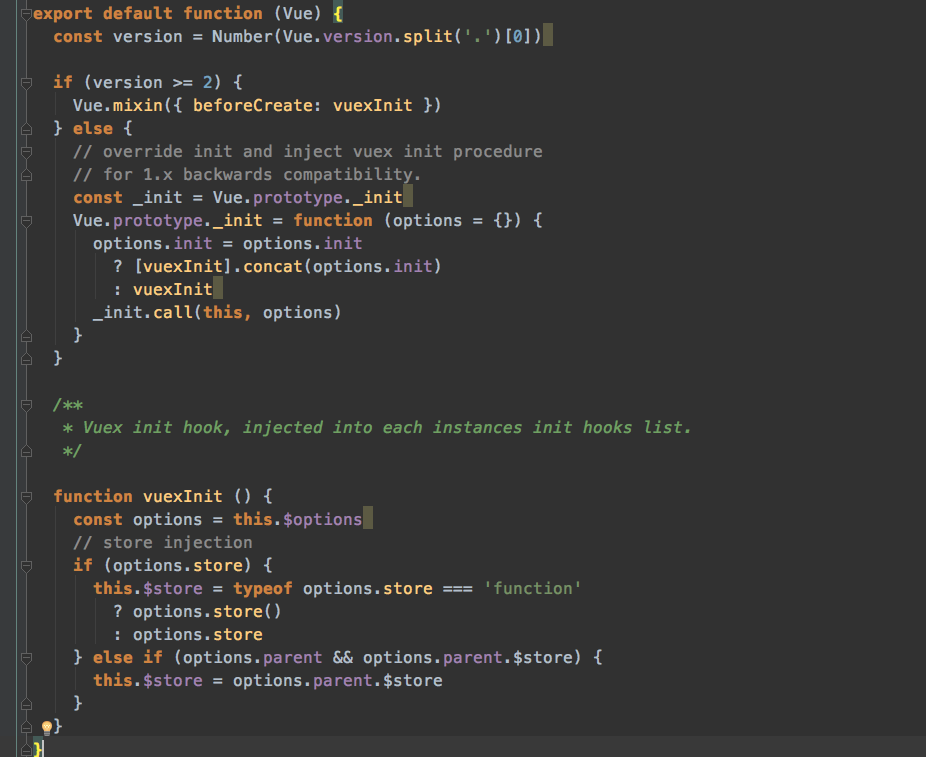 // 2.0版本以上 通过mixin的方式在每个Vue对象的beforeCreate生命周期执行的时候完成vuex初始化
