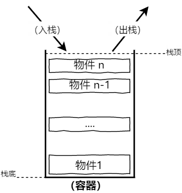 对“栈”的更形象理解,可以想像成一个空的容器,容器的底部是栈底,而容器的入口便是栈头,然后不断的向这个容器内部加入物件,一直塞满为止,当容器已经塞满的时候,若想再加入只能在容器的入口处将最近一次新添加的物件移出。
