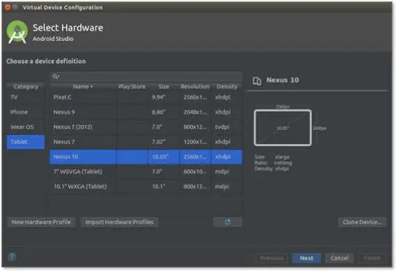 3、选择设备 : 平板电脑> Nexus 10