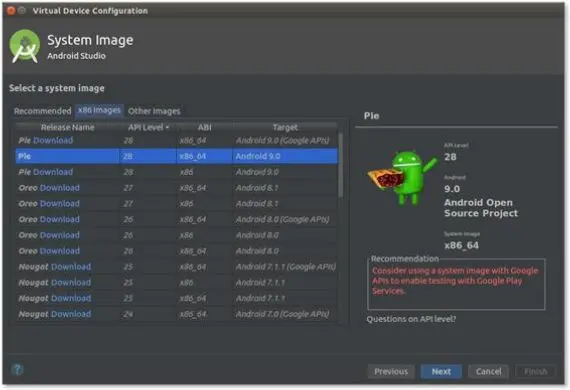 或者选择 Android 9.0 Google 镜像(可下载)