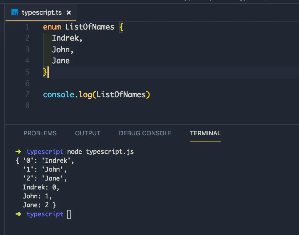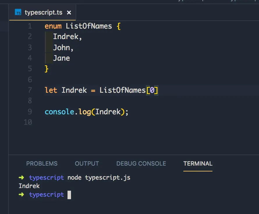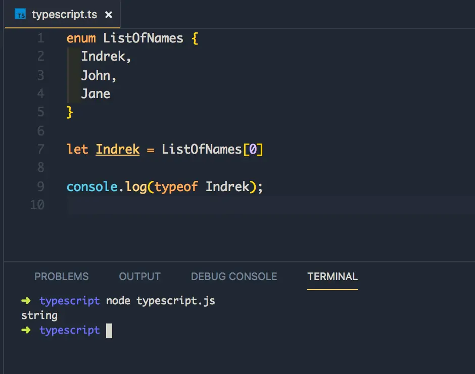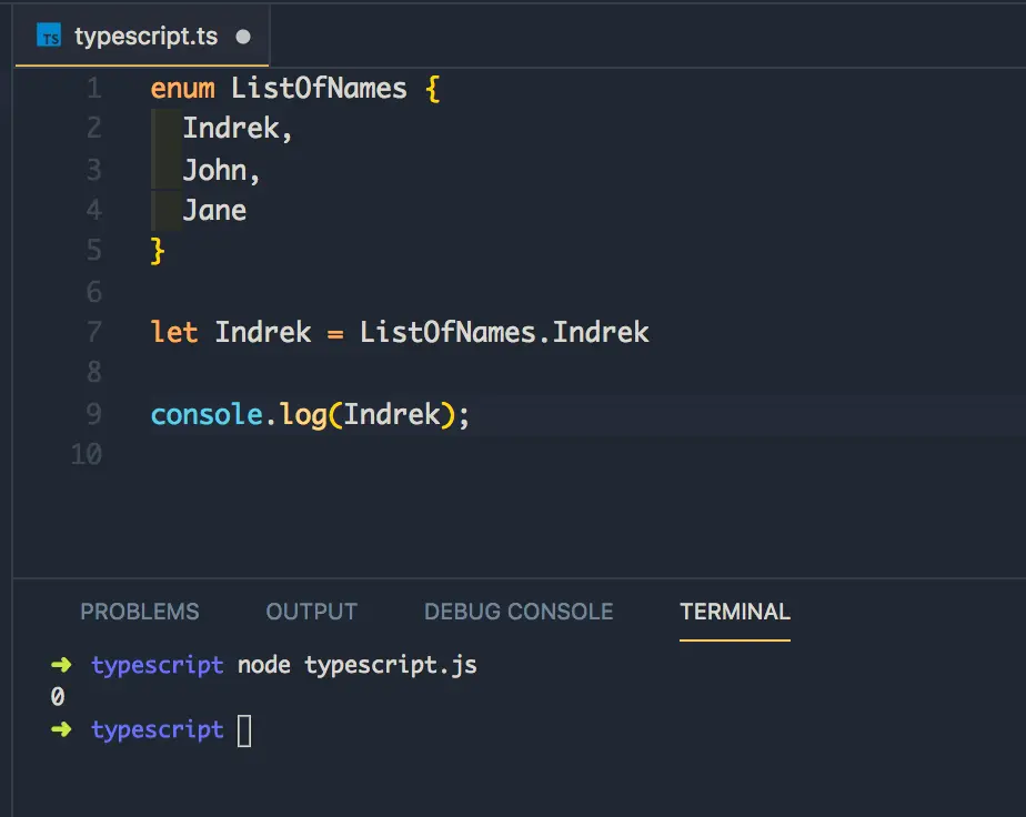 等下,它返回表示值的索引的整数。和数组一样,枚举从 0 开始索引其元素。