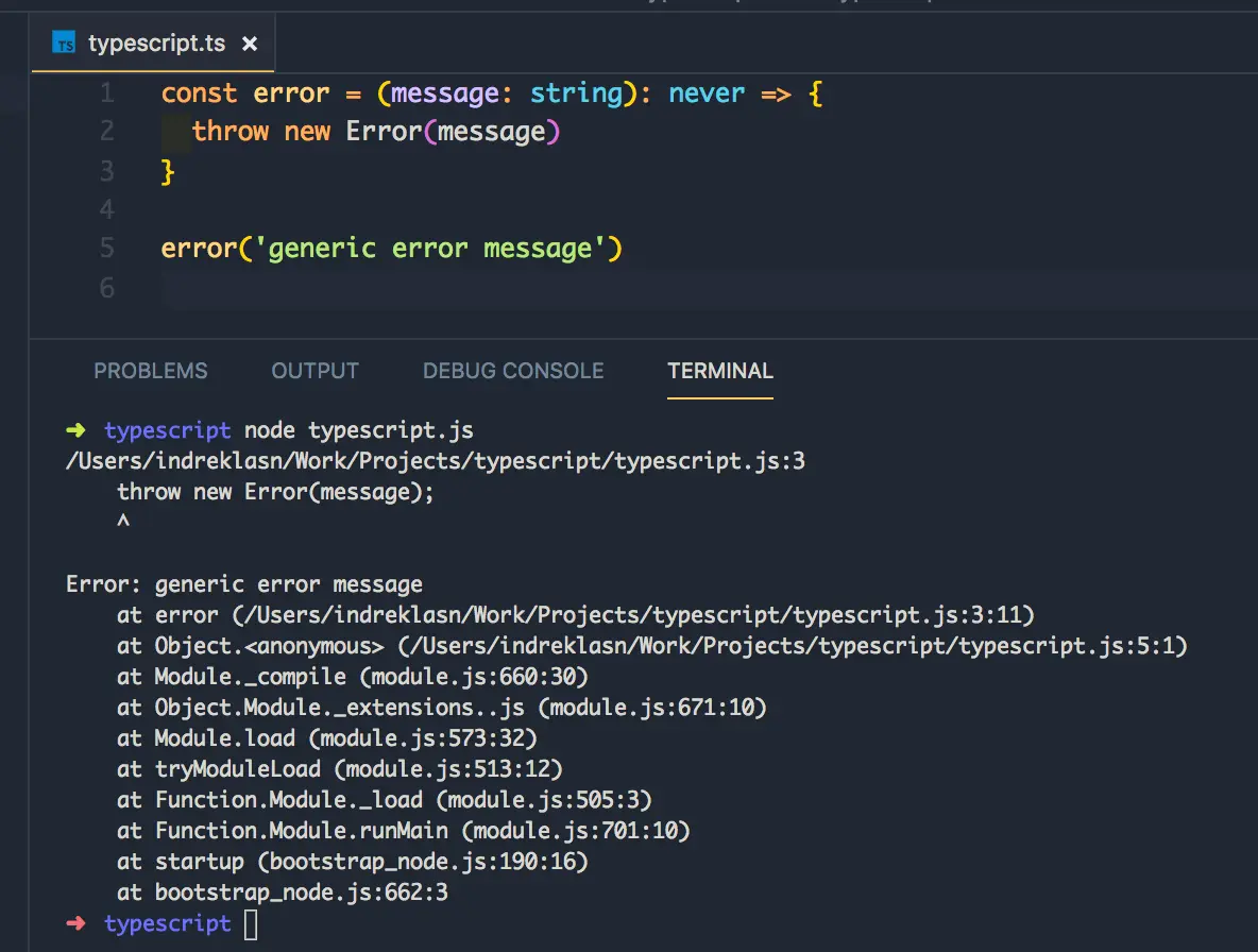 请注意当返回类型是 never 时,我们使用 never,而不使用 void。