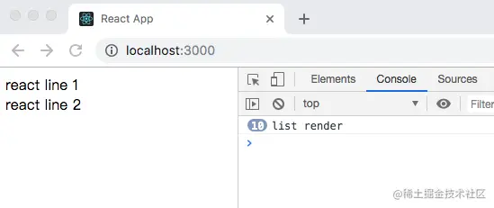 然后查看浏览器输出结果,惊奇地发生,PureComponent并没有阻止不必要render,这是为什么呢?因为前面我们说到PureComponent的shouldComponentUpdate只对props和state进行浅比较,也就是this.props = { list: { title: 'react line1' } },nextProps = { list: { title: 'react line1' } },作浅比较的话this.props当然不等于next.props.