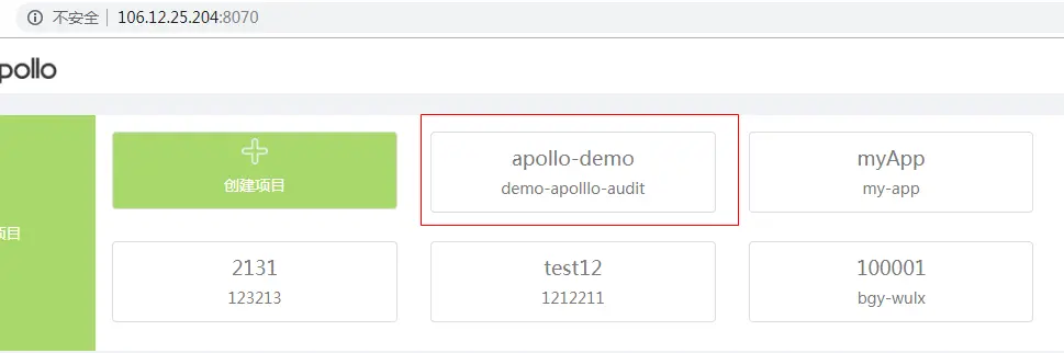 首先你得部署好了Apollo,Apollo提供了一个快速体验包,大家可以下载下来直接启动,具体操作请参考 Github 。不过官方本身也为我们准备了一个演示的地址,我们可以直接用来学习:http://106.12.25.204:8070 账号/密码:apollo/admin