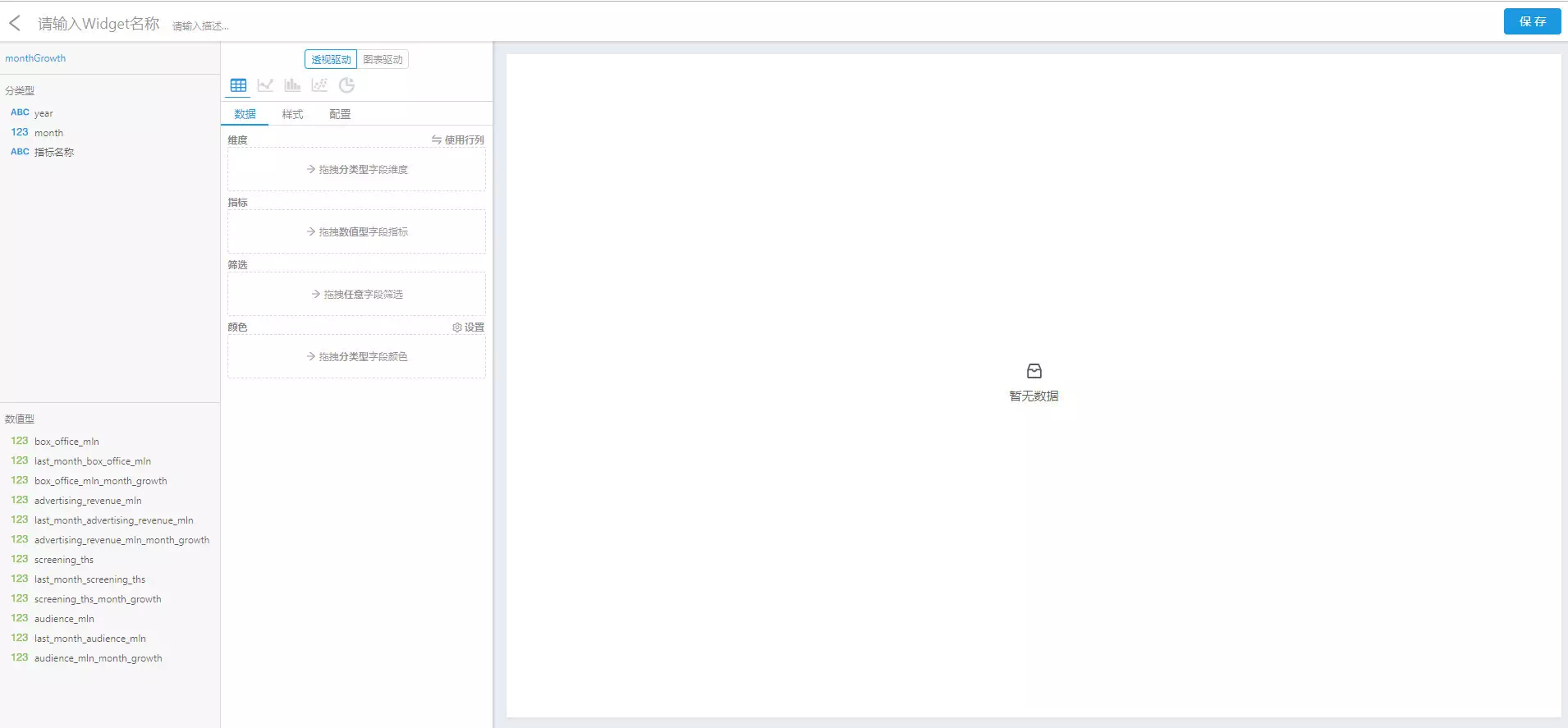 暂且称这组数据为“ABD虚拟影院相关数据”,接下来,就是借助Davinci展示同比环比的时刻啦!