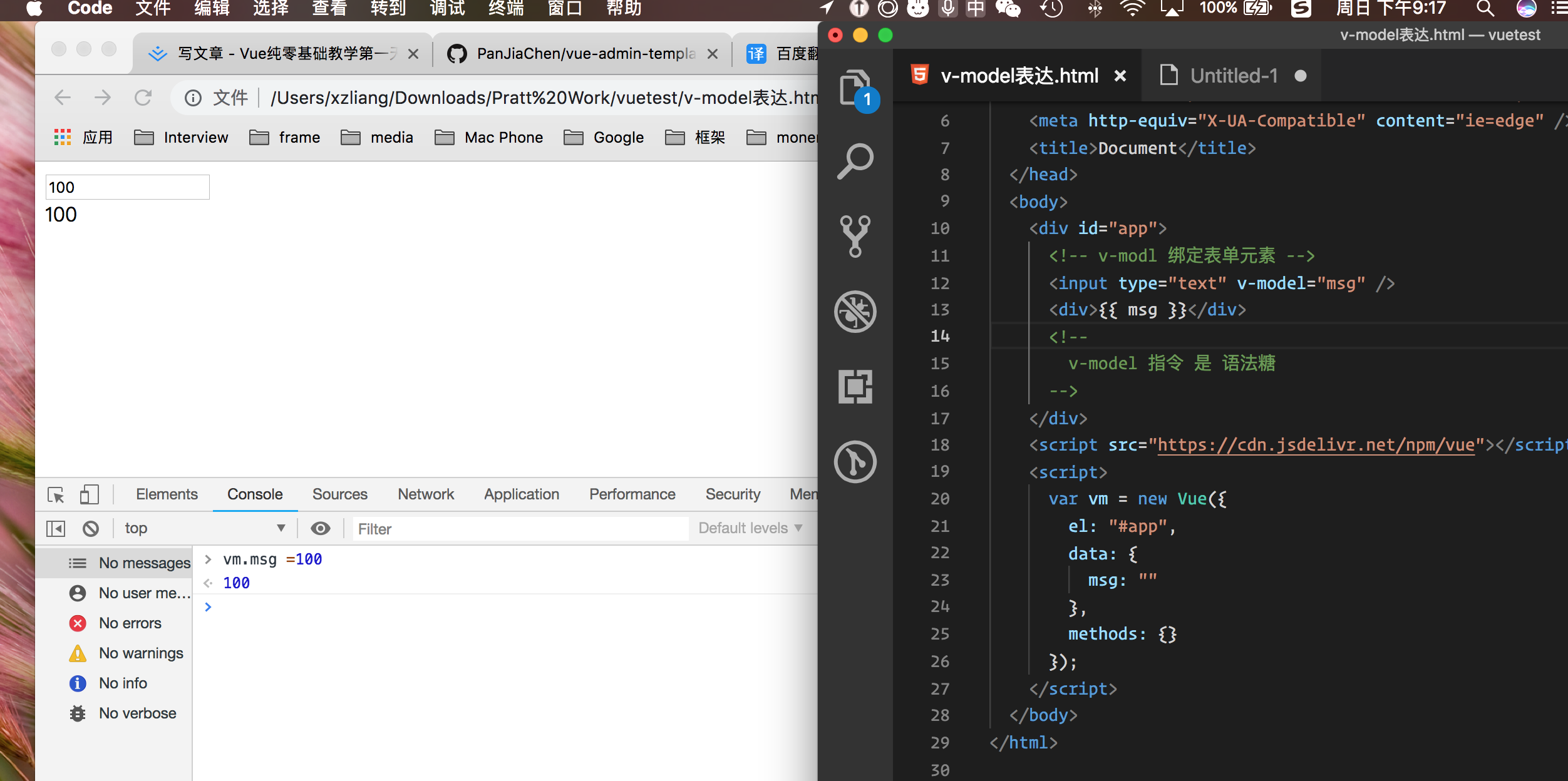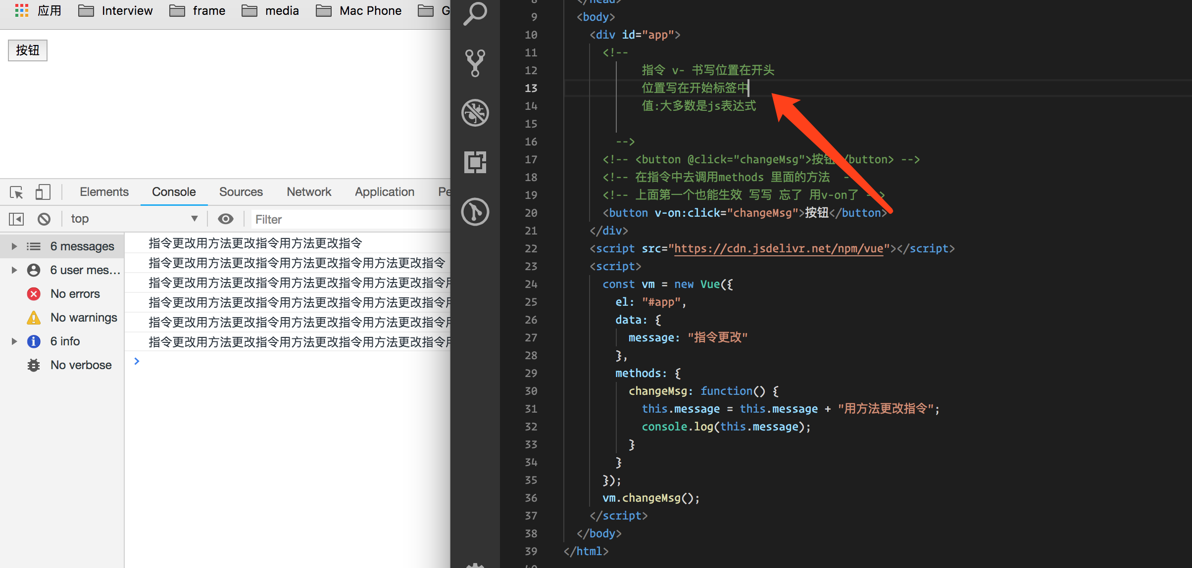 vue 通过指令来扩充了HTML 然后通过 表达式 将数据绑定到HTML