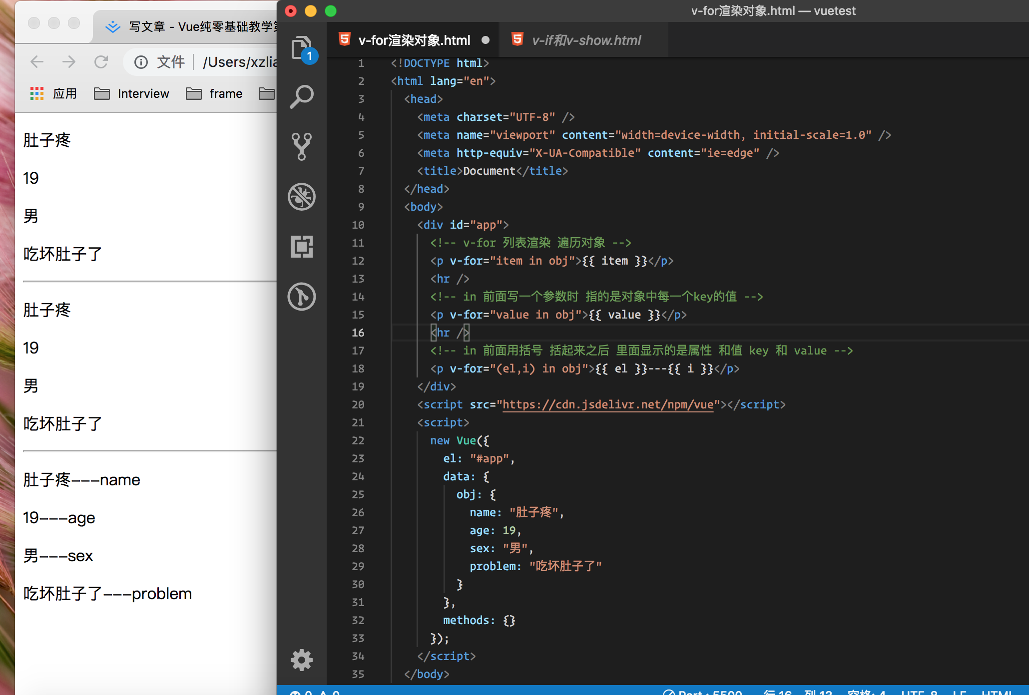 <p v-for="(el,i) in obj">{{ el }}---{{ i }}</p>