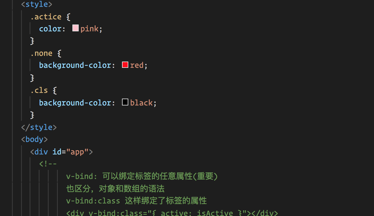 如果isActive 的值是true actice 类名就会赋值给class 否则就是不会
