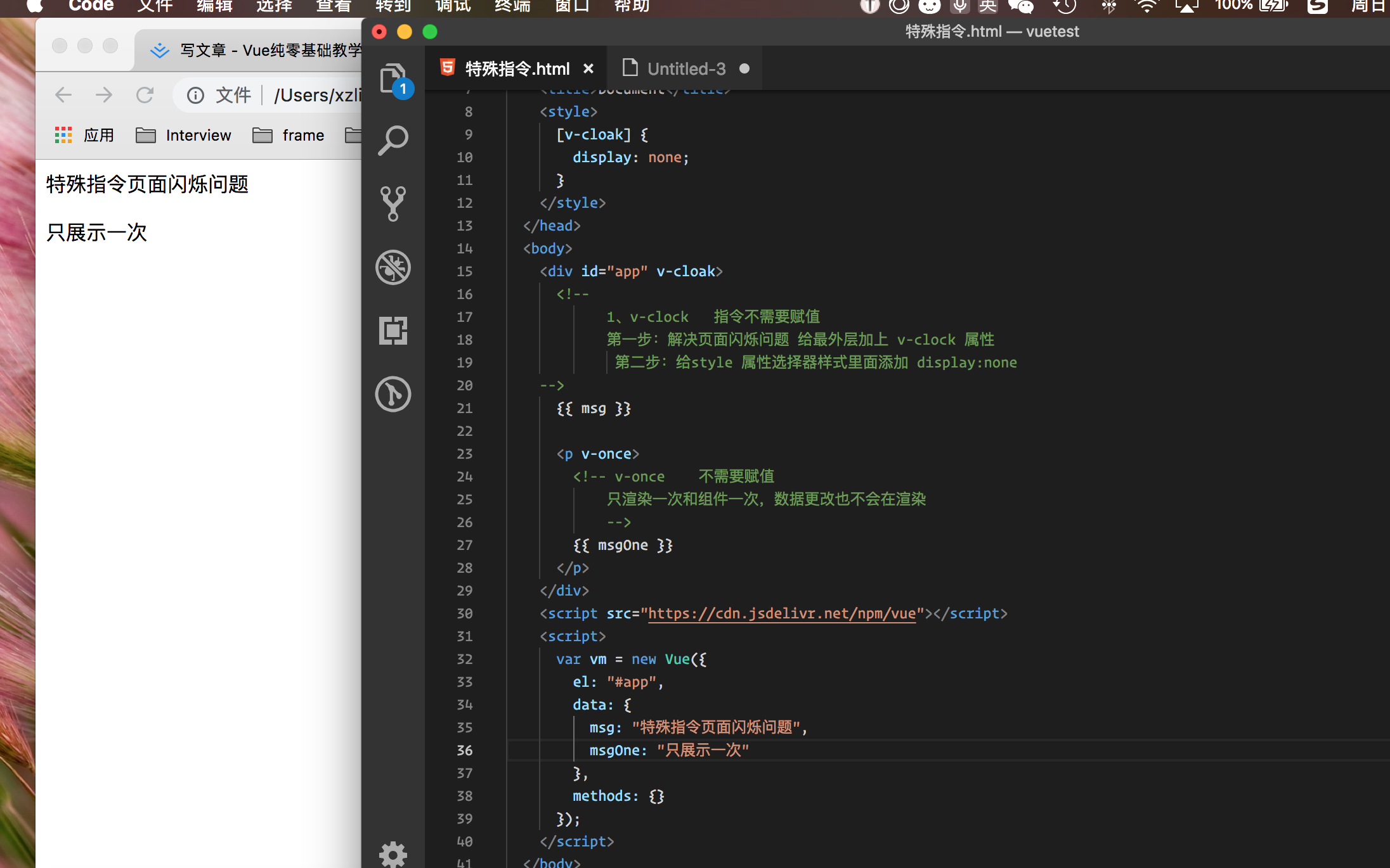 两个特殊指令 v-cloak 页面闪烁 和 v-once 只显示一次