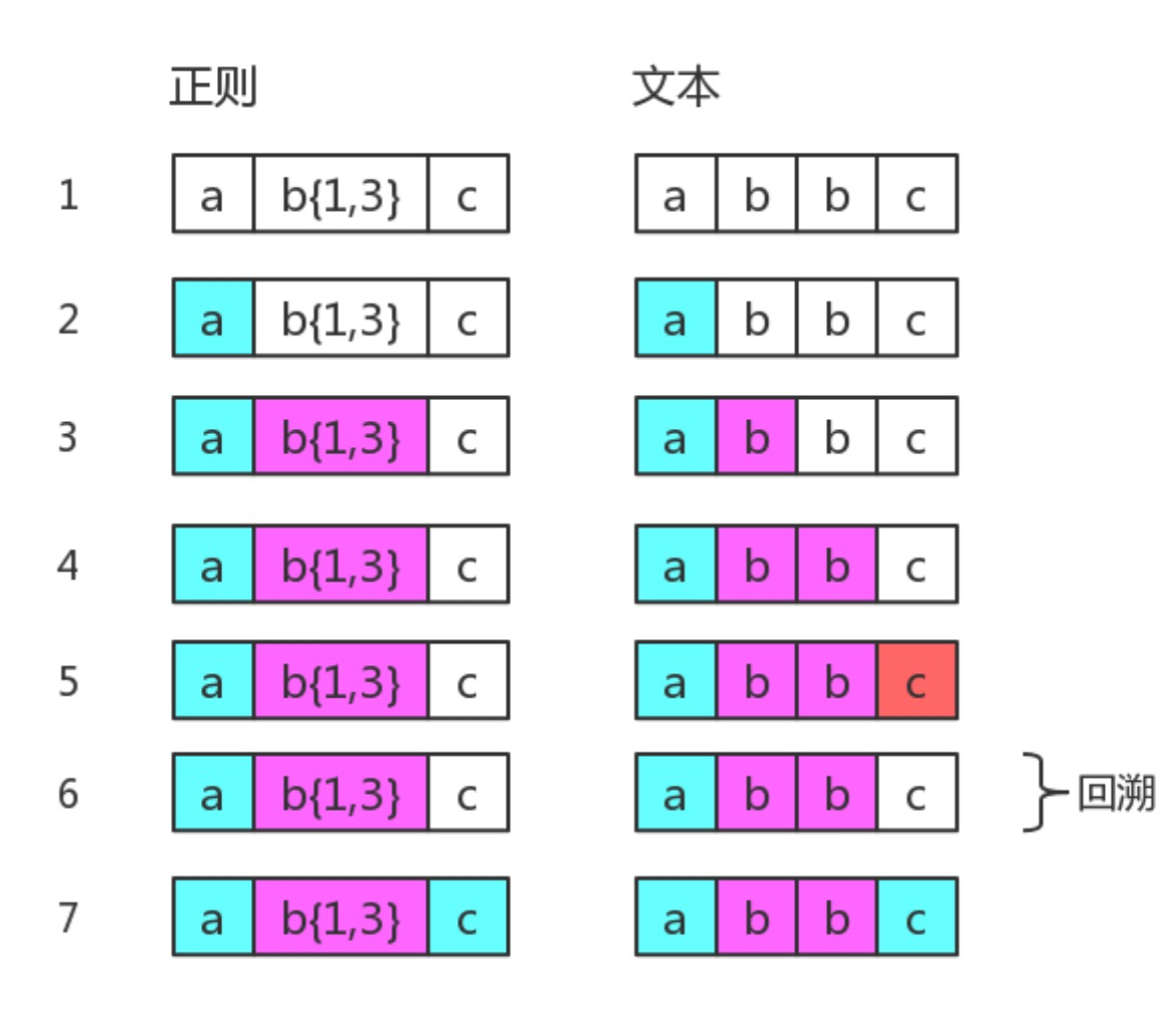 如果目标字符串是"abbc",中间就有回溯。