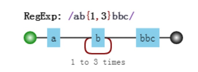 其中子表达式 b{1,3} 表示 "b" 字符连续出现 1 到 3 次。