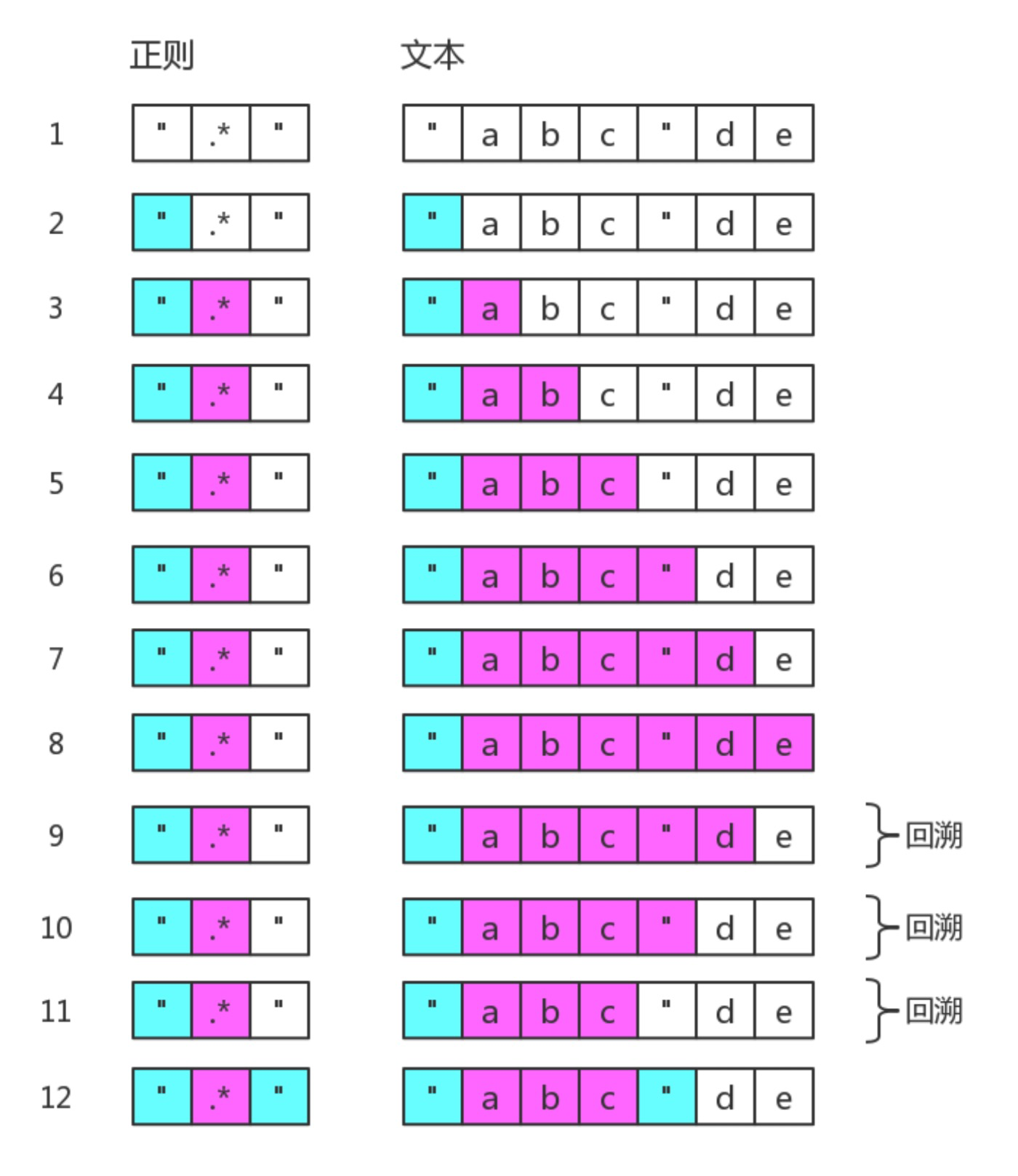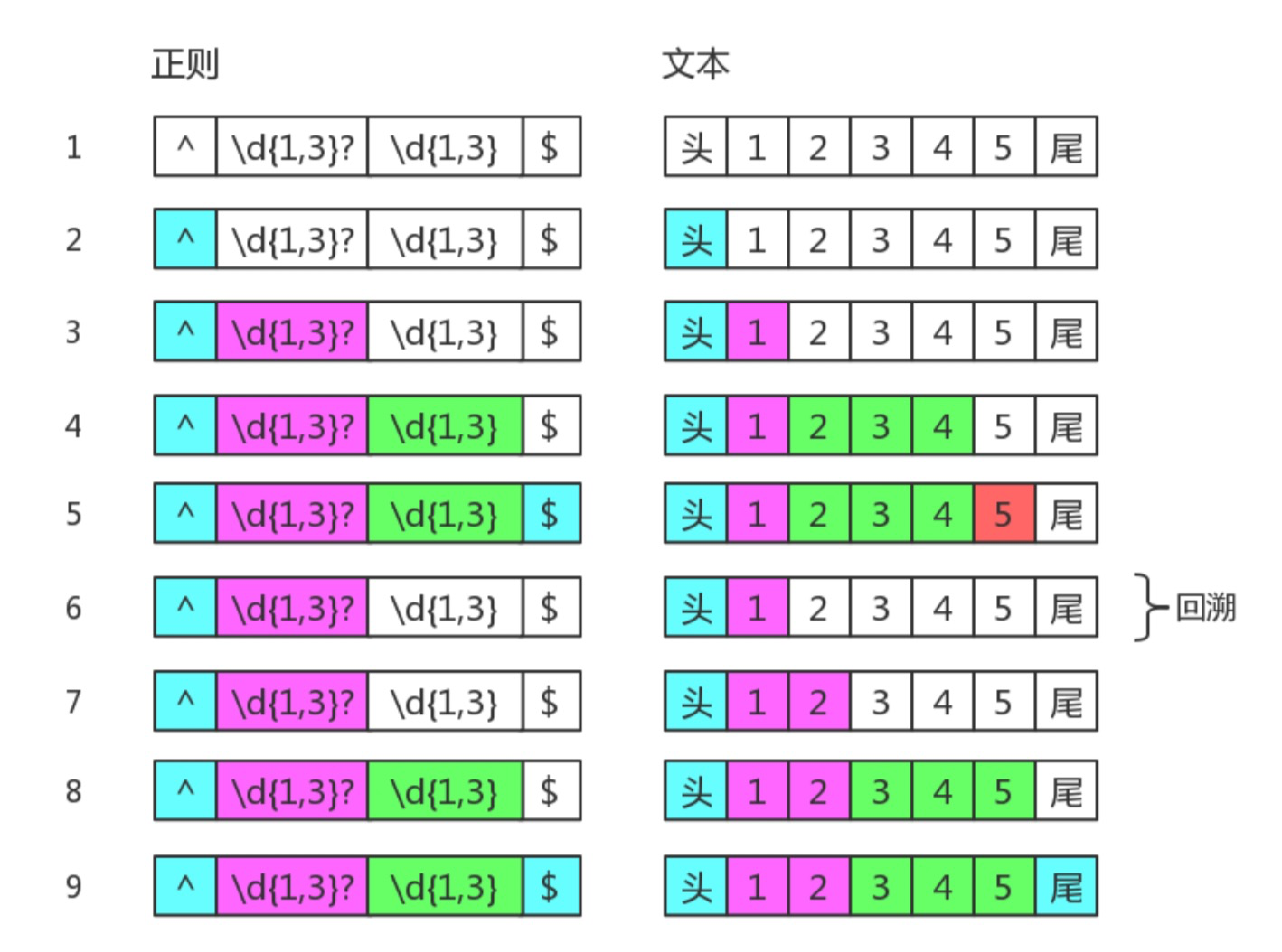 这里再看一个清晰的回溯,正则是: