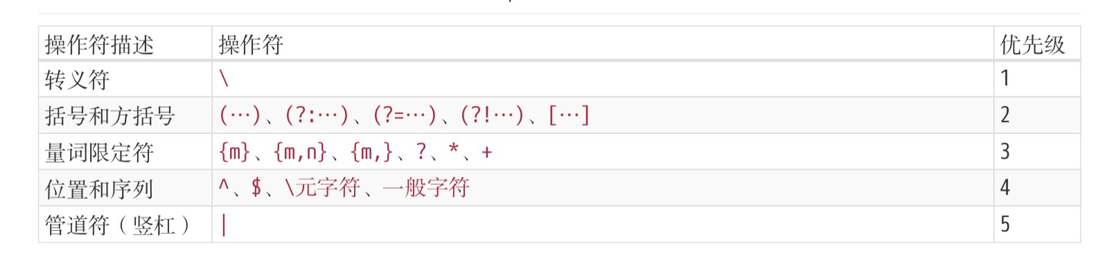 上面操作符的优先级从上至下,由高到低。
