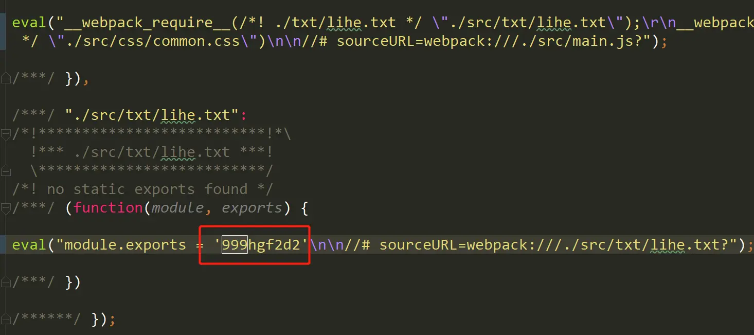 require('./txt/lihe.txt');打包后输出