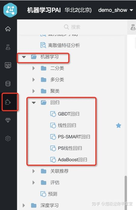 在组件栏发现有好多回归算法可以选择。