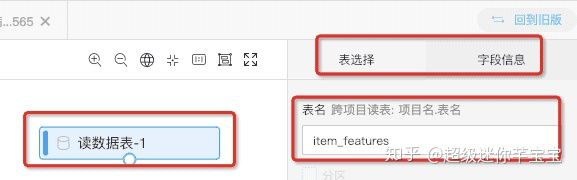 双击拖入的读数据表组件,再表名列输入,前面新建的odps表名。可以在字段信息栏看到表中部分数据。